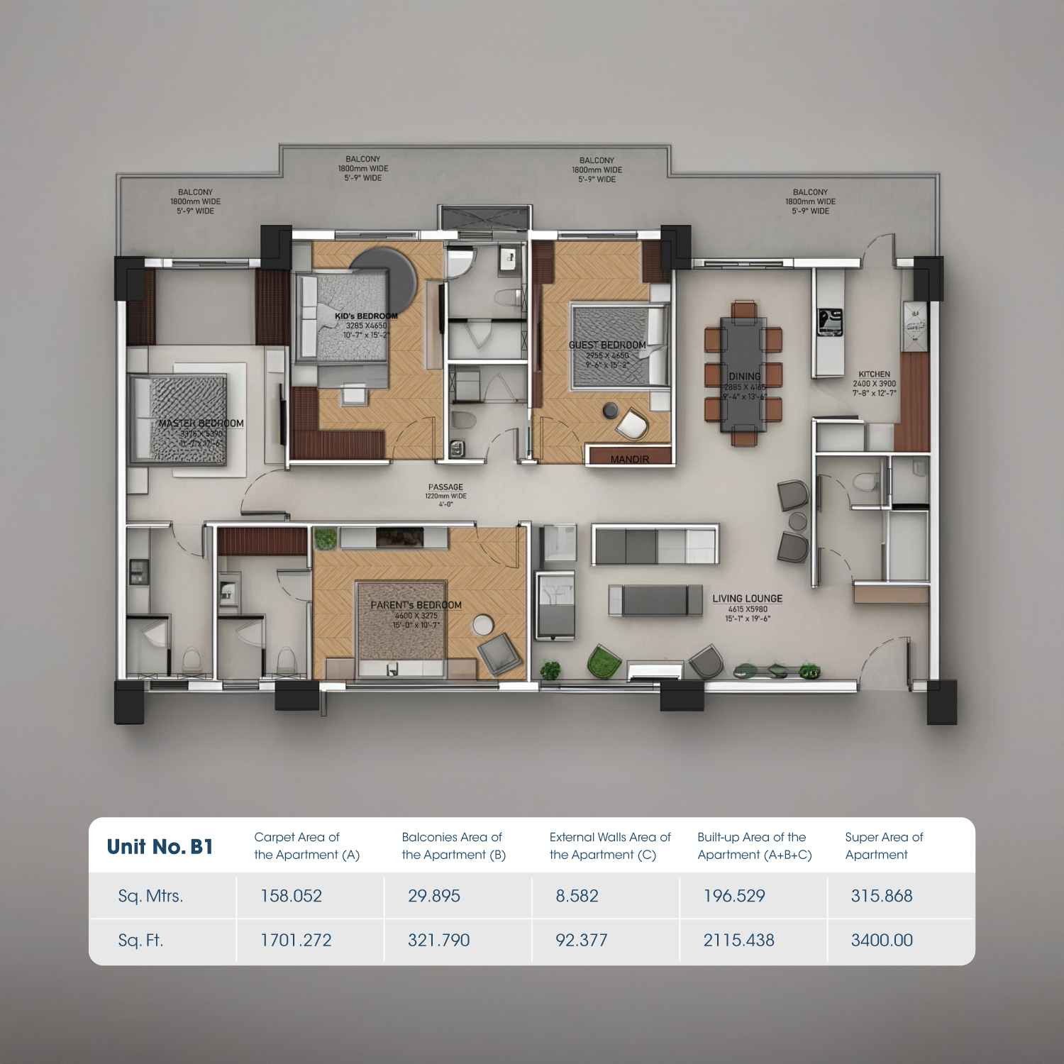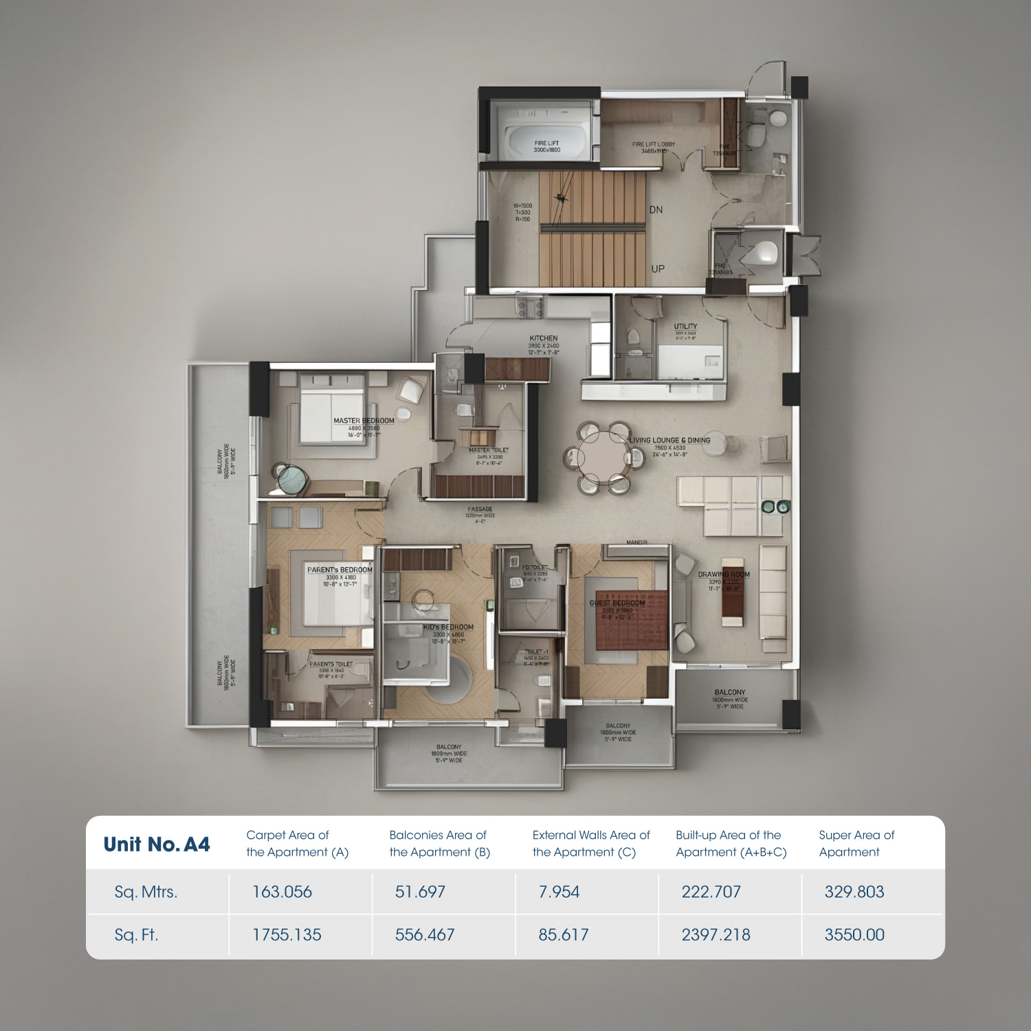 Presenting 4.5 BHK: *3550 sq. ft. Semi-Furnished Boutique Residences